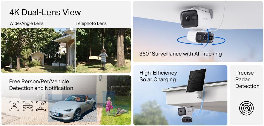 Một số tính năng nổi bật của Bộ Camera 2 ống kính chạy bằng NLMT Tapo C675D KIT