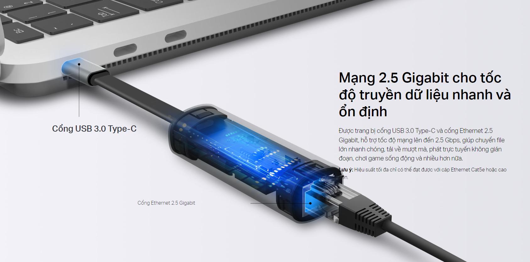 (Bộ chuyển đổi USB Type-C sang Ethernet 2.5 Gigabit TP-Link UE302C chính hãng)
