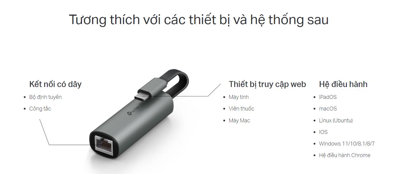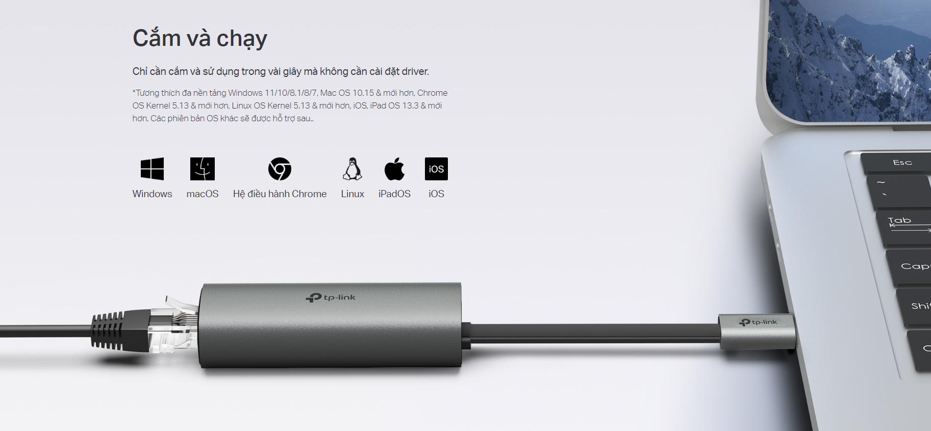 TP-Link UE302C hỗ trợ nhiều hệ điều hành phổ biến như Windows, macOS và Linux, đảm bảo khả năng hoạt động ổn định trên hầu hết các thiết bị hiện nay. Bạn không cần phải lo lắng về vấn đề cài đặt hay tương thích phần mềm.
