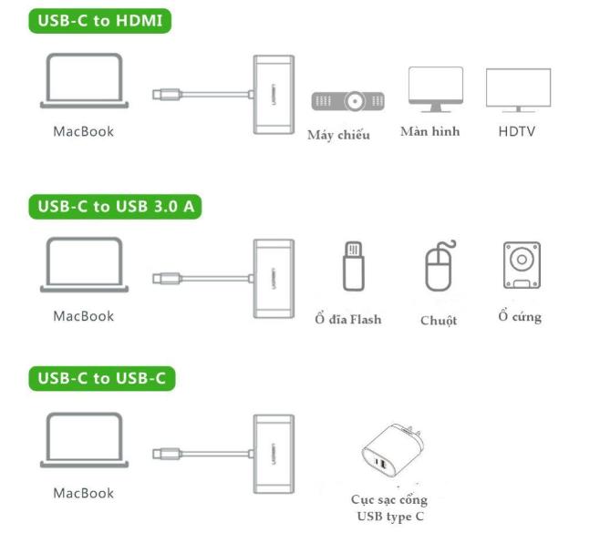 Một số tính năng nổi bật của Bộ chuyển đổi USB Type C sang USB 3.0 + HDMI + USB Type C Ugreen 30377
