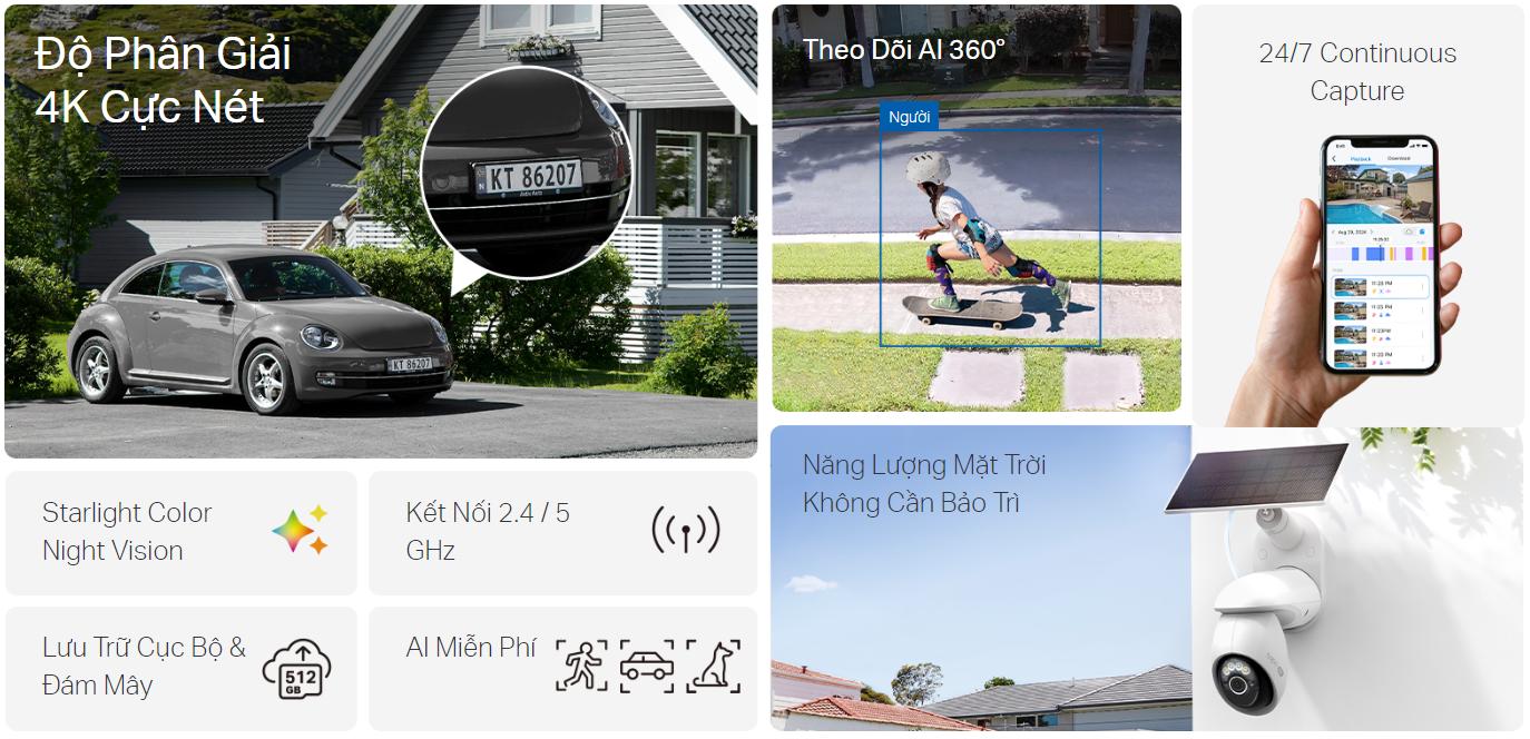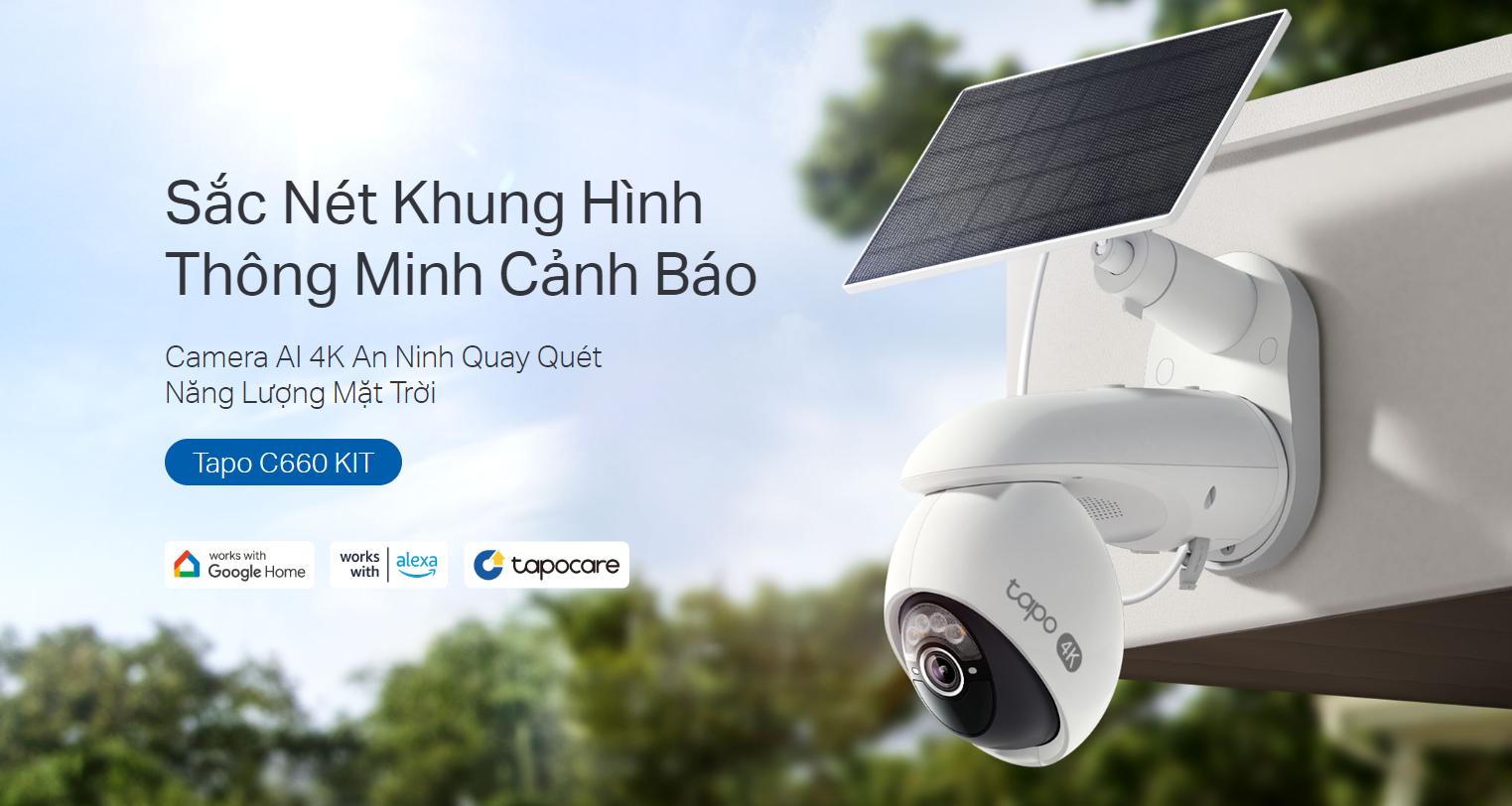 Bộ Kit Camera không dây Tapo C660 KIT là giải pháp giám sát an ninh ngoài trời hiện đại với độ phân giải 4K 8 MP siêu nét và zoom kỹ thuật số lên đến 18×, giúp bạn quan sát rõ ràng từng chi tiết ở khoảng cách xa. Tapo C660 KIT tích hợp AI nhận diện người, thú cưng và phương tiện, đồng thời theo dõi 360° tự động, giảm cảnh báo sai và đảm bảo an toàn toàn diện. Camera sử dụng năng lượng mặt trời, hoạt động không dây, lắp đặt linh hoạt và hỗ trợ Wi-Fi hai băng tần 2.4/5 GHz cho kết nối ổn định. Đây là lựa chọn tuyệt vời để bảo vệ gia đình và tài sản mọi lúc, mọi nơi.