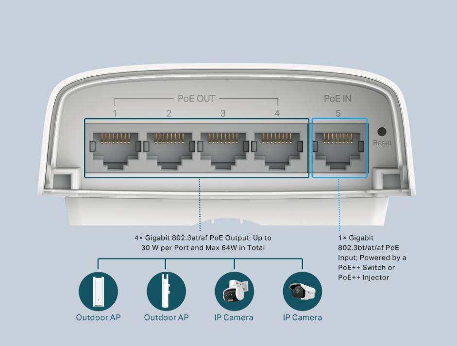 Một số tính năng nổi bật của Bộ mở rộng PoE ngoài trời TP-Link SG2005P-PD