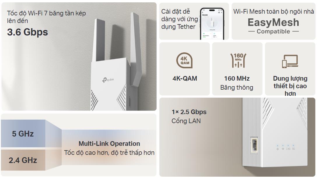 Các tính năng nổi bật của Bộ mở rộng sóng Wi-Fi 7 BE3600 TP-Link RE235BE