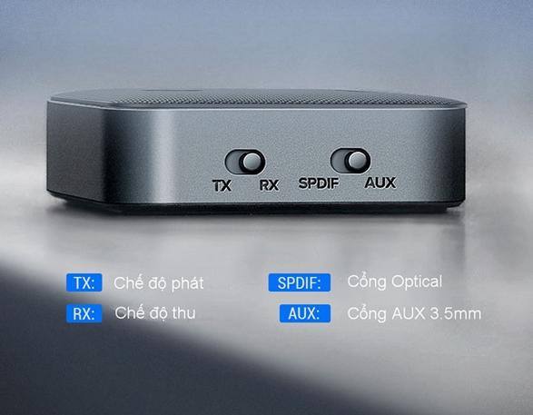 Thiết bị có thể hoạt động ở cả hai chế độ: nhận và phát Bluetooth. Trong chế độ phát, bạn có thể kết nối thiết bị với TV, máy tính hoặc các nguồn âm thanh khác để truyền tín hiệu đến tai nghe hoặc loa Bluetooth. Ở chế độ nhận, nó giúp biến các thiết bị âm thanh truyền thống như loa thường thành loa Bluetooth, mang lại sự tiện lợi tối đa.