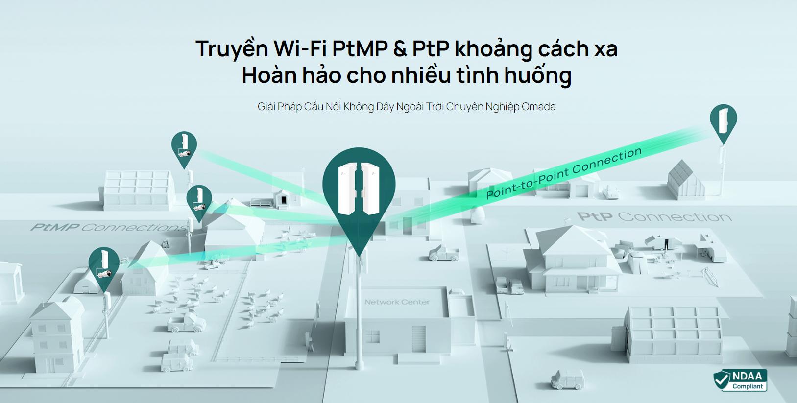 Với công nghệ truyền dẫn không dây tiên tiến, bộ thu phát ko dây Omada hỗ trợ tốc độ Wi-Fi cao và hiệu suất ổn định ngay cả khi có nhiều thiết bị kết nối cùng một lúc. Điều này đảm bảo trải nghiệm người dùng mượt mà, không bị gián đoạn.