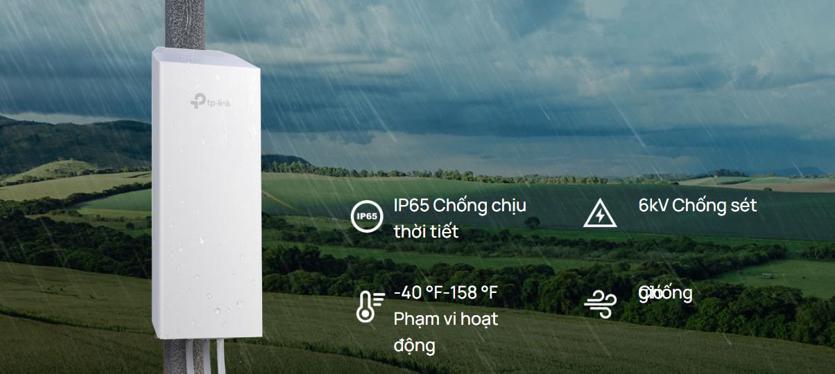 Bộ thu phát không dây Omada được trang bị vỏ bọc chống chịu thời tiết, đảm bảo hoạt động bền bỉ trong các điều kiện khắc nghiệt như mưa, gió, bụi bẩn hay nhiệt độ cao. Điều này giúp Omada EAP115-Bridge KIT trở thành một lựa chọn lý tưởng cho các ứng dụng ngoài trời.