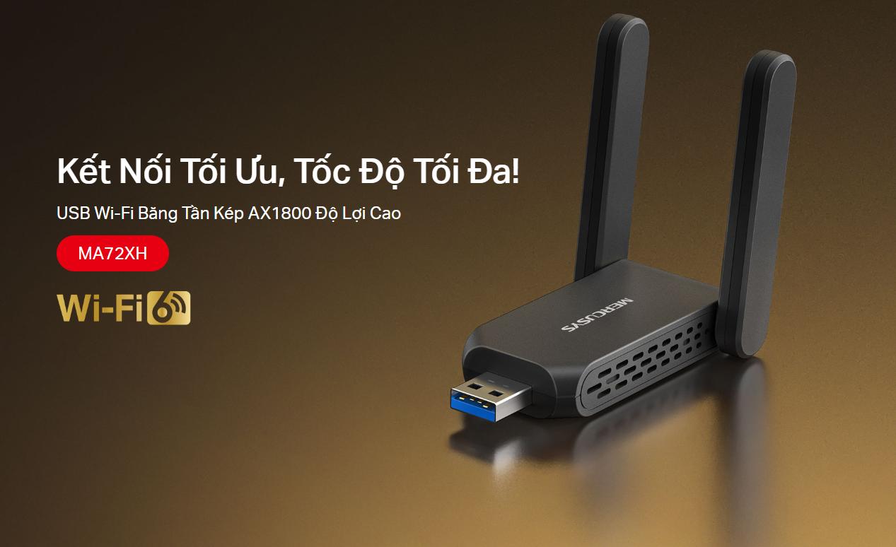 Mercury MA72XH được trang bị công nghệ Wi-Fi 6 (802.11ax) – tiêu chuẩn Wi-Fi tiên tiến nhất hiện nay. Công nghệ này mang lại tốc độ truyền tải nhanh hơn, độ trễ thấp hơn và hiệu suất vượt trội so với các thế hệ Wi-Fi trước đó. Điều này đặc biệt hữu ích khi bạn cần sử dụng kết nối mạng cho các tác vụ đòi hỏi băng thông lớn như chơi game trực tuyến, xem video 4K hoặc tham gia các cuộc họp trực tuyến.