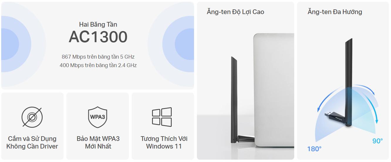 Một số tính năng cơ bản của Bộ Thu Wi-Fi USB 2.0 AC1300 Mercusys MA30H
