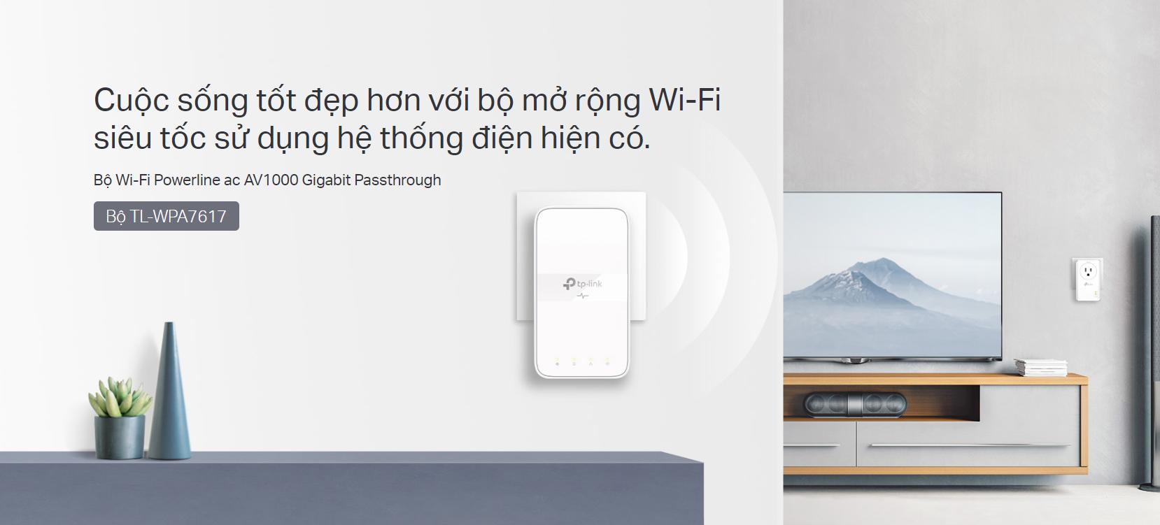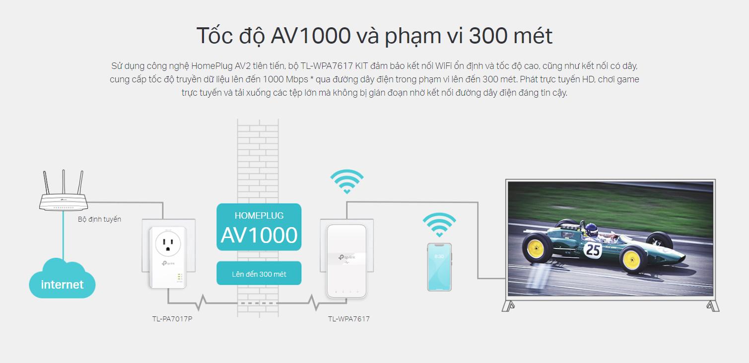 (Bộ Wi-Fi Powerline AC AV1000 Gigabit Passthrough TP-Link TL-WPA7617 KIT chính hãng, giá tốt)