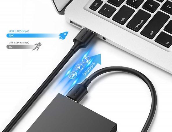 Cáp Ugreen 30149 hỗ trợ chuẩn USB 3.0 với tốc độ truyền tải dữ liệu lên đến 5Gbps, nhanh hơn gấp 10 lần so với chuẩn USB 2.0 thông thường. Điều này giúp người dùng tiết kiệm thời gian khi sao chép các tệp tin dung lượng lớn, như video HD, hình ảnh chất lượng cao hay các tài liệu quan trọng.