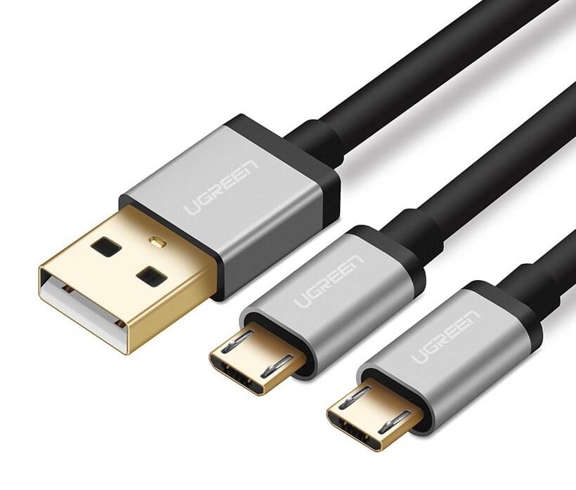 (Cáp sạc truyền dữ liệu USB 2.0 sang 2 đầu MICRO USB Ugreen 40347 chính hãng)