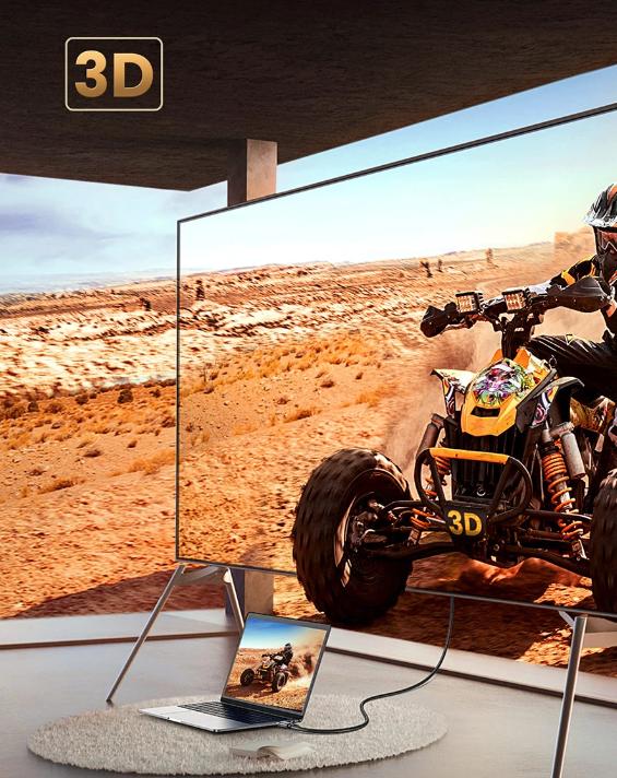 Cáp HDMI 4K còn hỗ trợ công nghệ hình ảnh 3D, cho phép người dùng trải nghiệm các nội dung đa chiều một cách chân thực và sống động. Tính năng này rất phù hợp cho những ai yêu thích xem phim 3D hoặc sử dụng các thiết bị trình chiếu hiện đại.