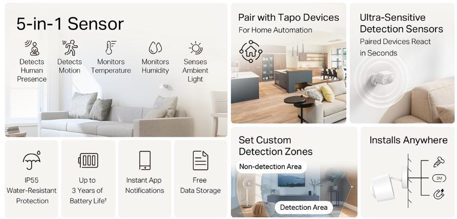 Một số tính năng nổi bật của Cảm biến nhận diện thông minh Tapo T150