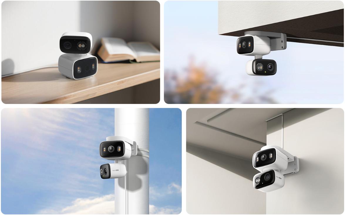 Camera an ninh trong nhà/ngoài trời với hai ống kính theo dõi hai khu vực