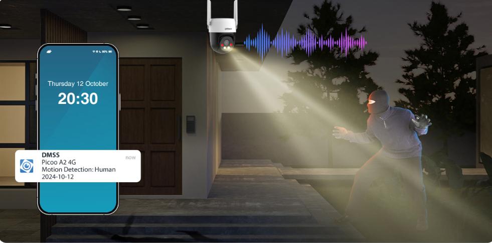 Dahua DH-SD-P5AE-PV-4G tích hợp công nghệ phát hiện chuyển động thông minh, giúp cảnh báo kịp thời khi có sự xâm nhập trái phép. Người dùng có thể nhận thông báo trực tiếp qua điện thoại hoặc máy tính, từ đó nhanh chóng đưa ra các biện pháp xử lý.