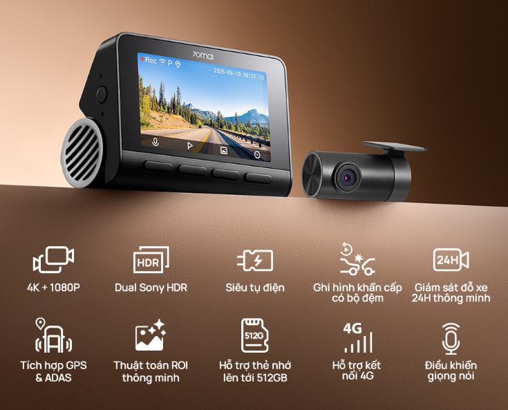Camera hành trình 70mai là thương hiệu dẫn đầu trong camera hành trình thông minh, nổi bật với các giải pháp ghi hình 4K Ultra HD và công nghệ tiên tiến như cân bằng sáng tự động, ADAS, GPS tích hợp và giọng nói rảnh tay. Camera hành trình 70mai A810S-2 mang đến trải nghiệm lái xe an toàn và đáng tin cậy cho người dùng.
