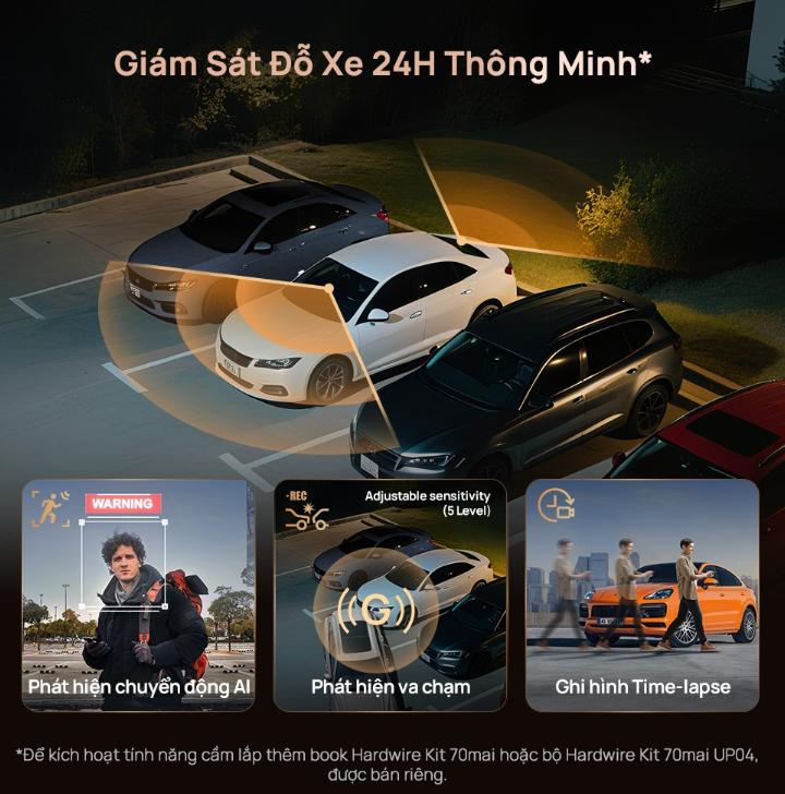 Một điểm cộng lớn của 70mai A810S-2 là chế độ giám sát khi đỗ xe. Camera sẽ tự động kích hoạt khi phát hiện va chạm hoặc chuyển động bất thường quanh xe, giúp bạn bảo vệ phương tiện ngay cả khi không có mặt tại đó.
