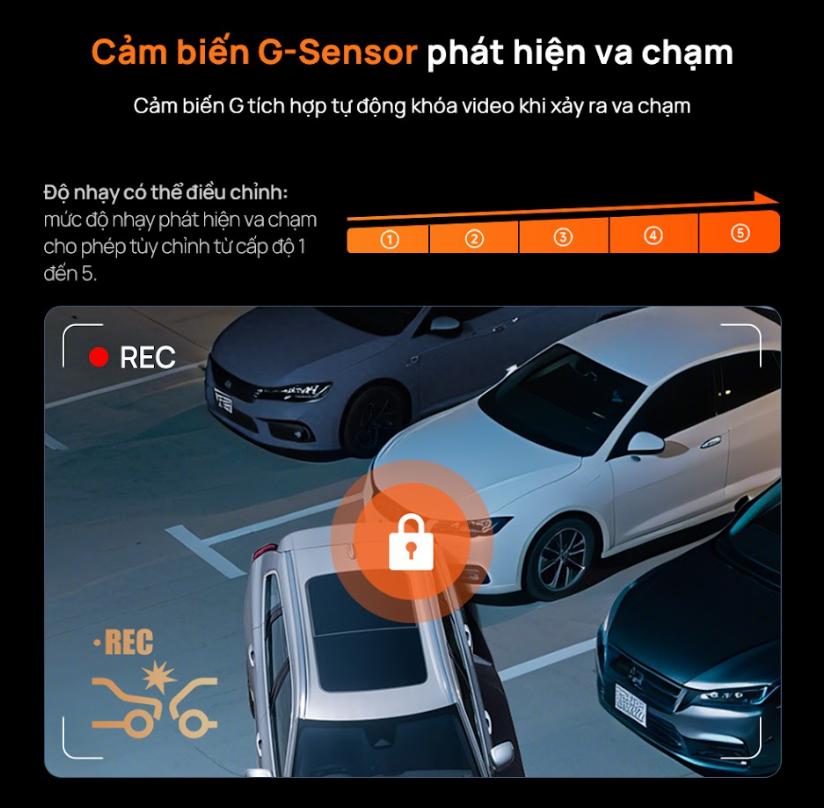 Cảm biến G-Sensor thông minh được tích hợp trong T400 có khả năng phát hiện các va chạm đột ngột. Khi xảy ra va chạm, camera sẽ tự động khóa và lưu trữ video để tránh bị ghi đè, đảm bảo rằng bạn luôn có bằng chứng quan trọng khi cần thiết.