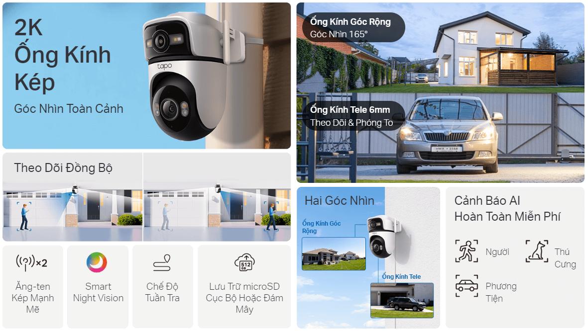 Một số tính năng nổi bật của Camera ngoài trời 2 ống kính 2K Tapo C545D