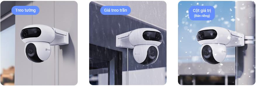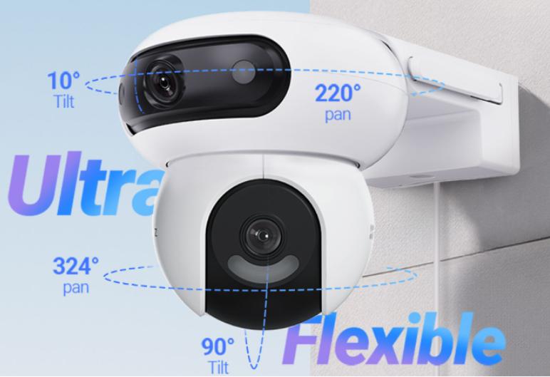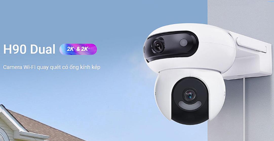 Ezviz CS-H90 được trang bị hai camera với độ phân giải 4MP mỗi mắt, mang lại khả năng ghi hình sắc nét và chi tiết. Thiết kế 2 mắt kép cho phép camera bao quát góc nhìn rộng hơn, giúp bạn giám sát mọi góc độ mà không cần lắp đặt nhiều thiết bị.