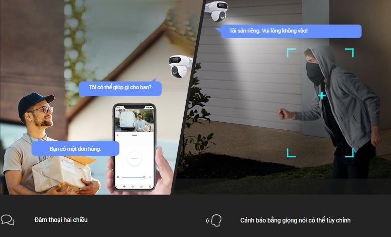 Ezviz CS-H90 được trang bị micro và loa tích hợp, cho phép giao tiếp hai chiều dễ dàng. Bạn có thể trò chuyện trực tiếp với người ở khu vực giám sát thông qua ứng dụng trên điện thoại.