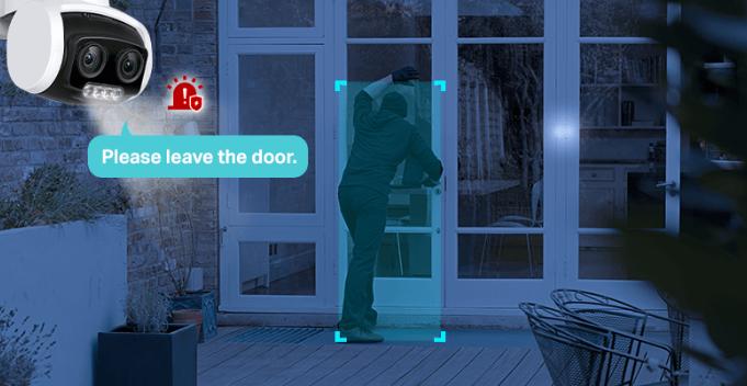 Camera được tích hợp sẵn còi hú và đèn chớp báo động để phản ứng ngay lập tức khi phát hiện có kẻ đột nhập. Điều này không chỉ giúp ngăn chặn hành vi xâm nhập mà còn tạo sự cảnh giác cao hơn cho những kẻ có ý định xấu.