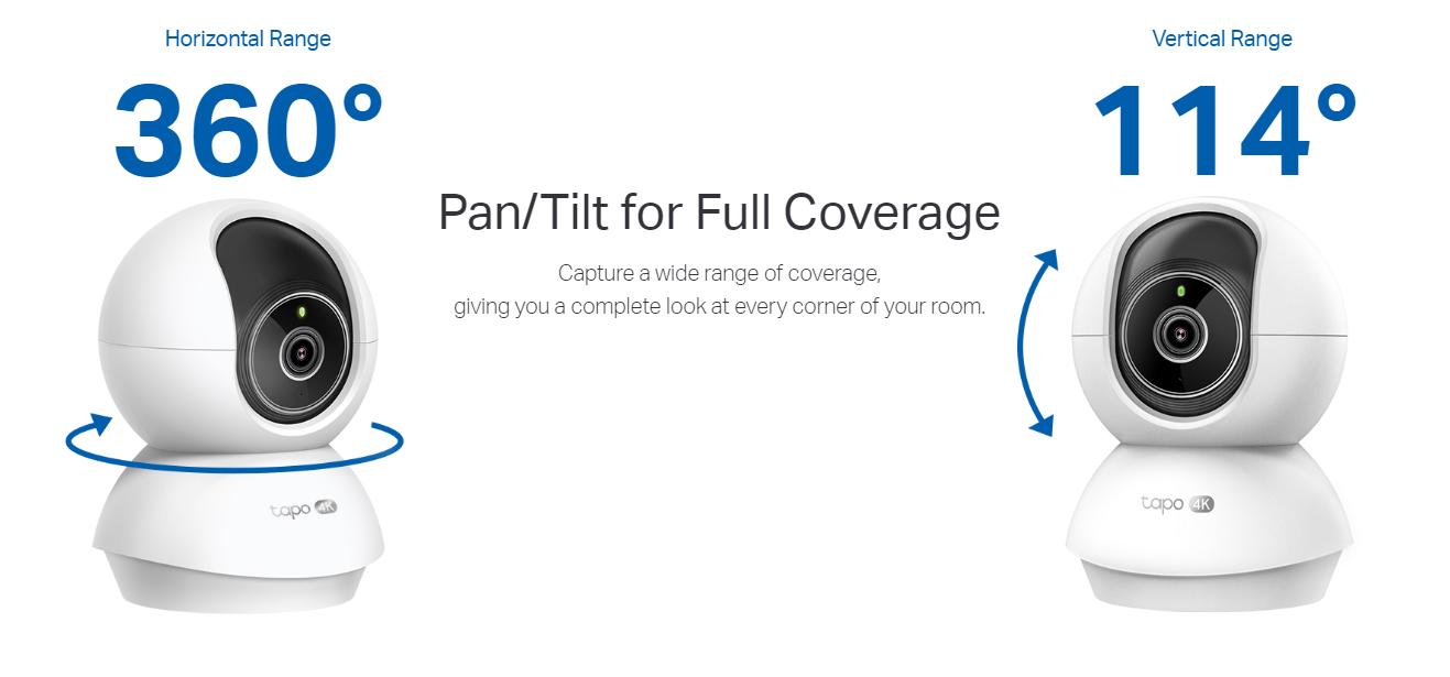 Tapo C250 hỗ trợ khả năng xoay ngang 360 độ và nghiêng dọc, giúp mở rộng tầm nhìn và bao quát toàn bộ không gian mà không để lại điểm mù. Chỉ cần thao tác qua ứng dụng trên điện thoại, bạn có thể điều chỉnh góc quay một cách dễ dàng.