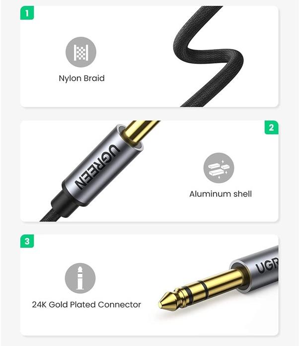 Một số tính năng nổi bật của Cáp âm thanh 3 cực đực 6,35mm đến 4 cực 3,5mm Ugreen 20498