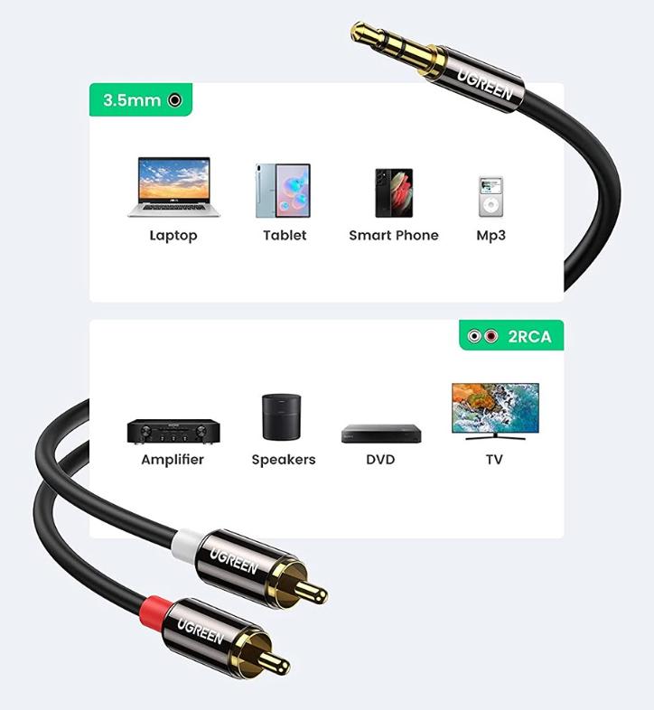 Cáp Audio Ugreen 10584 có khả năng tương thích với nhiều loại thiết bị khác nhau. Đầu cắm 3.5mm phù hợp với hầu hết các thiết bị phát âm thanh như điện thoại di động, máy tính bảng, máy tính xách tay, trong khi đầu RCA có thể kết nối dễ dàng với các thiết bị âm thanh như loa, ampli hay đầu đĩa CD.