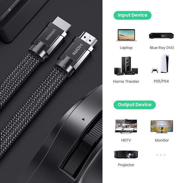 cáp bện hợp kim kẽm HDMI, hỗ trợ kết nối với nhiều loại thiết bị khác nhau như TV, máy chiếu, máy chơi game (PS5, Xbox), laptop, và các thiết bị phát đa phương tiện khác. Nhờ đó, người dùng có thể dễ dàng sử dụng sản phẩm trong nhiều mục đích khác nhau, từ giải trí gia đình đến công việc chuyên nghiệp.