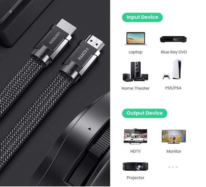 Cáp bện hợp kim kẽm Ugreen tương thích với nhiều thiết bị hiện đại như TV thông minh, máy chiếu, máy chơi game (PS5, Xbox), laptop, PC, và các thiết bị hỗ trợ HDMI khác. Điều này giúp người dùng dễ dàng kết nối và sử dụng mà không cần lo lắng về vấn đề tương thích.