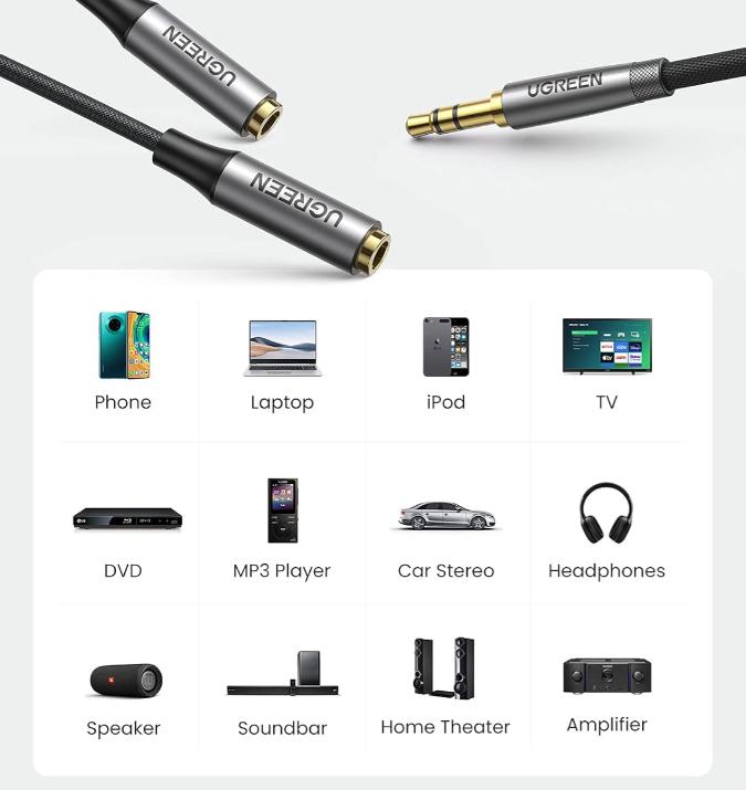 Cáp chia âm thanh tương thích với hầu hết các thiết bị có cổng âm thanh 3.5mm trên thị trường hiện nay như điện thoại thông minh, máy tính bảng, laptop, PC, loa và tai nghe. Điều này đảm bảo rằng bạn có thể sử dụng cáp với nhiều thiết bị khác nhau mà không gặp phải bất kỳ trở ngại nào.