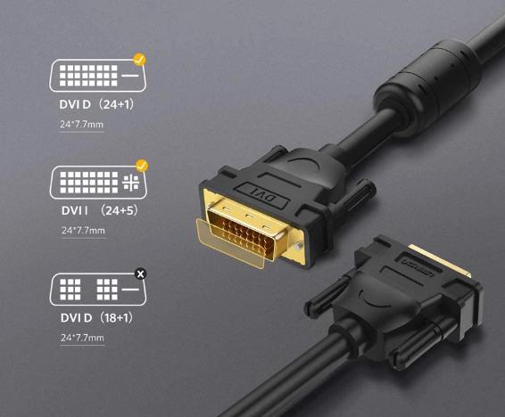 Cáp chuyển Ugreen 11644 hỗ trợ chuẩn kết nối DVI-D (24+1 pin), tương thích với nhiều loại thiết bị hiện nay. Đây là giải pháp lý tưởng cho người dùng cần kết nối hình ảnh từ các thiết bị đời cũ hoặc không có cổng HDMI sang màn hình hoặc máy chiếu hiện đại.