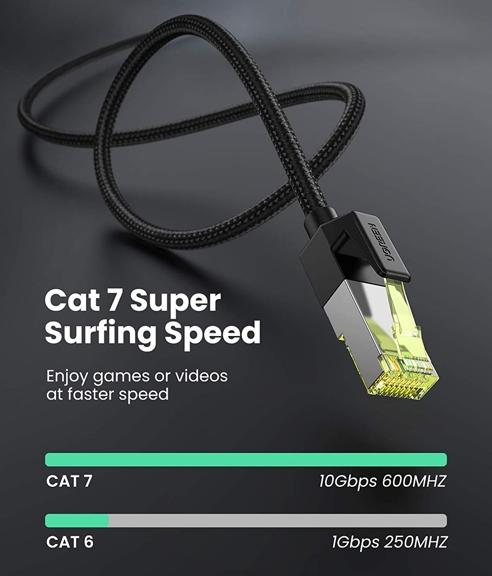 Một số tính năng nổi bật của Cáp mạng Cat7 vỏ bọc Nylon dài 15M băng thông 10Gbps 600MHz Ugreen 10643