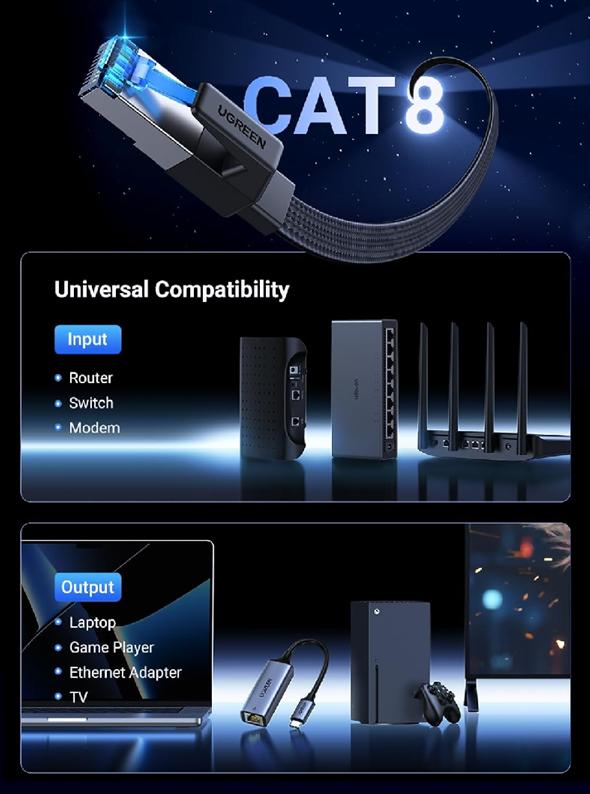 Một số tính năng nổi bật của Cáp mạng CAT8 đúc sẵn dẹt dài 20m Ugreen 40177