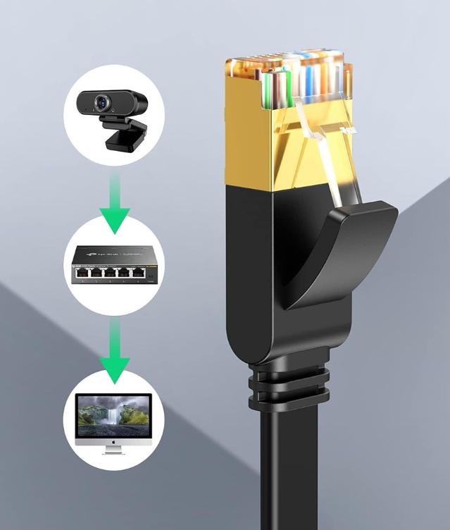 Một trong những ưu điểm nổi bật của cáp mạng Ugreen Cat7 là thiết kế dẹt độc đáo. Thiết kế này không chỉ giúp tiết kiệm không gian khi lắp đặt, mà còn giúp người dùng dễ dàng luồn dây qua các khe hẹp hoặc gắn dưới thảm mà không gây cản trở. Điều này làm cho sản phẩm trở thành lựa chọn lý tưởng cho các không gian nhỏ gọn hoặc môi trường làm việc chuyên nghiệp.