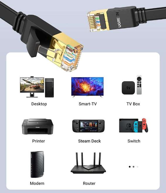Một số tính năng nổi bật của Cáp mạng đúc sẵn Cat7 dài 8m dẹt chính hãng Ugreen 11264