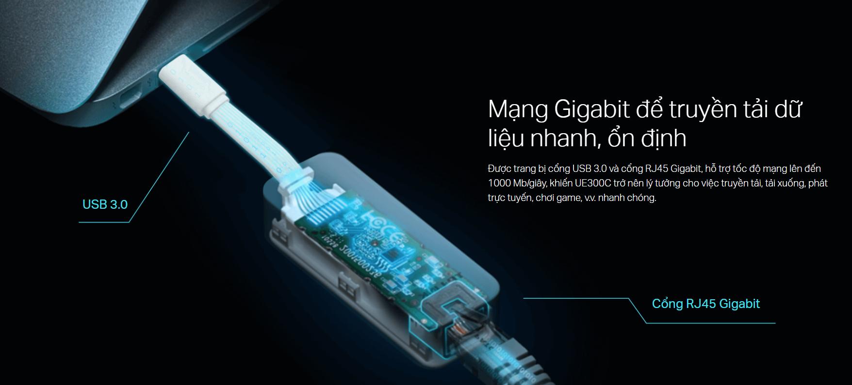 UE300C hỗ trợ tốc độ mạng Gigabit Ethernet lên đến 1000 Mbps, mang lại trải nghiệm lướt web, xem phim trực tuyến hay chơi game mượt mà và không bị gián đoạn. Đây là một lựa chọn lý tưởng cho những ai thường xuyên làm việc với các ứng dụng đòi hỏi băng thông lớn hoặc truyền tải dữ liệu nhanh chóng.