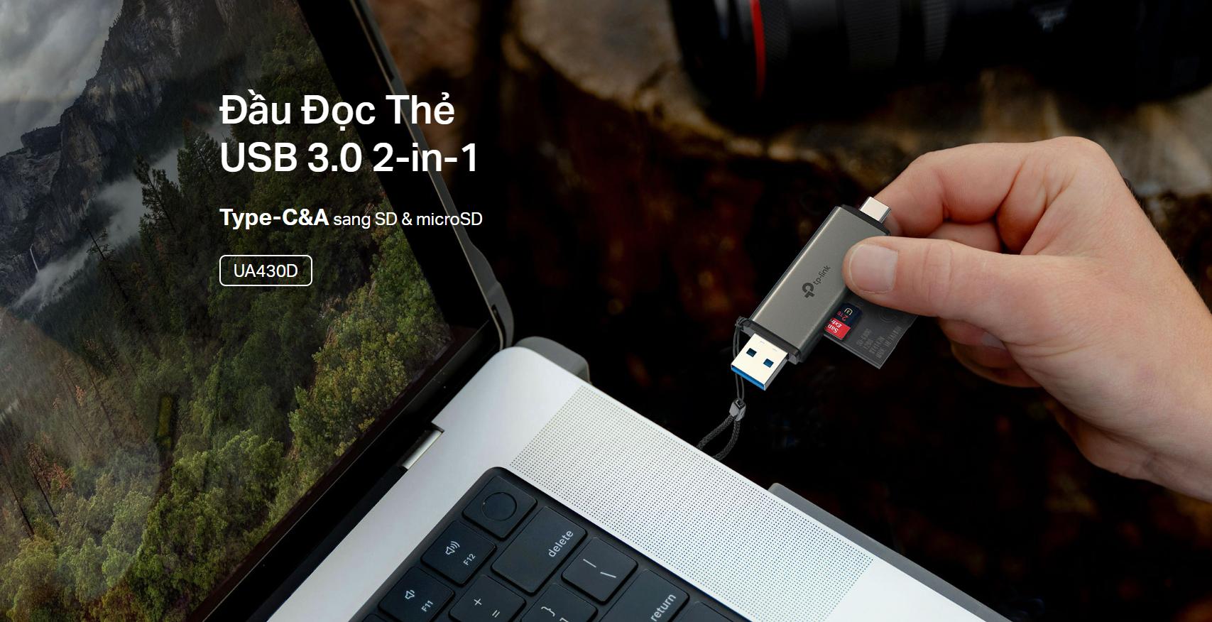 (Đầu Đọc Thẻ 2 Đầu USB-C & USB-A TP-Link UA430D chính hãng)