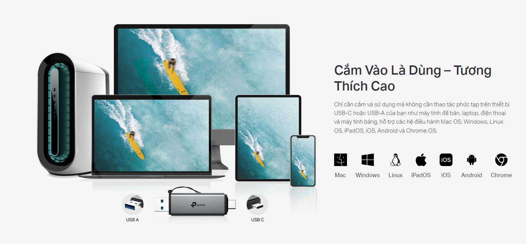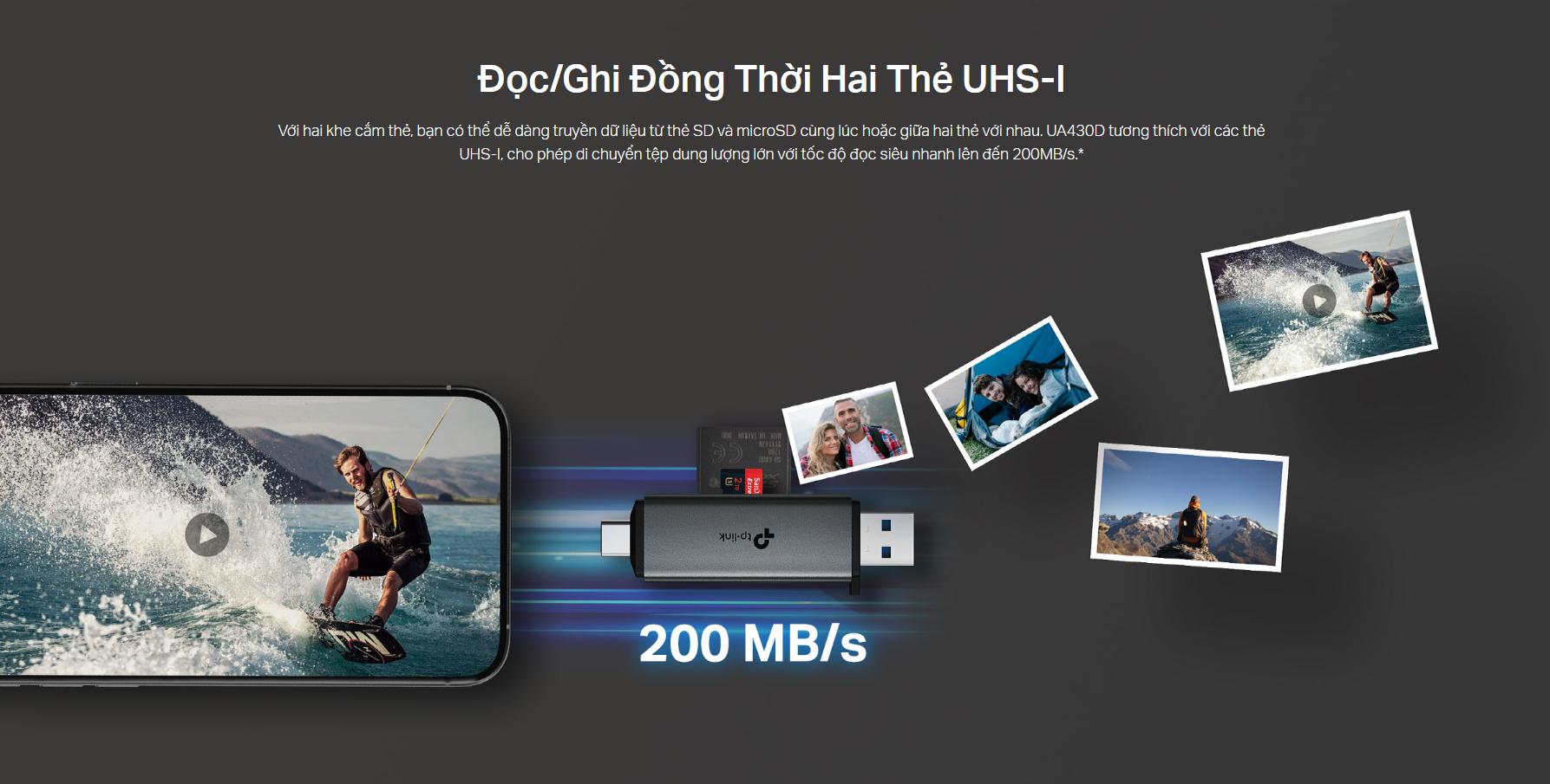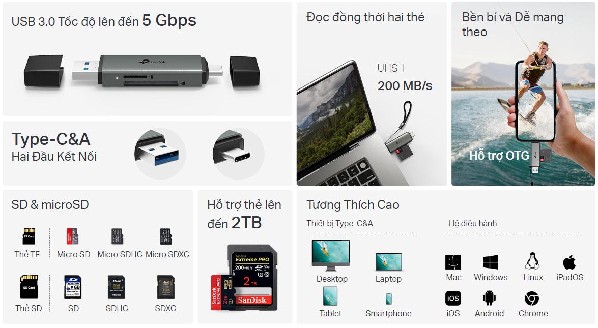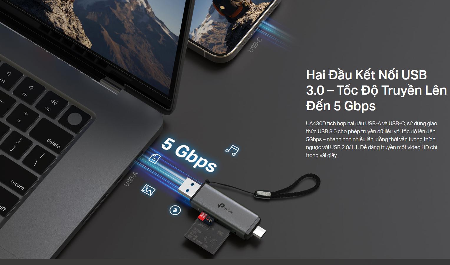 Một số tính năng cơ bản của Đầu Đọc Thẻ 2 Đầu USB-C & USB-A TP-Link UA430D