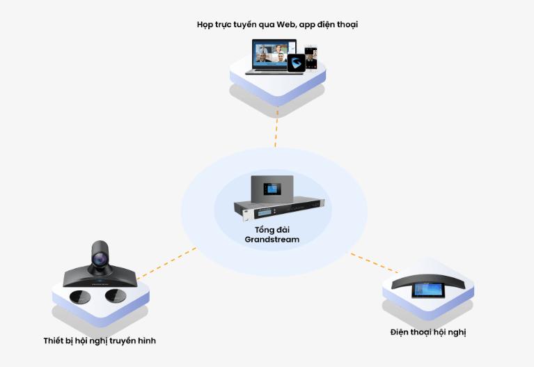 Tổng đài IP Grandstream cho phép tổ chức các cuộc họp trực tuyến chuyên nghiệp, kết nối nhân viên, đối tác hay khách hàng ở bất kỳ đâu.