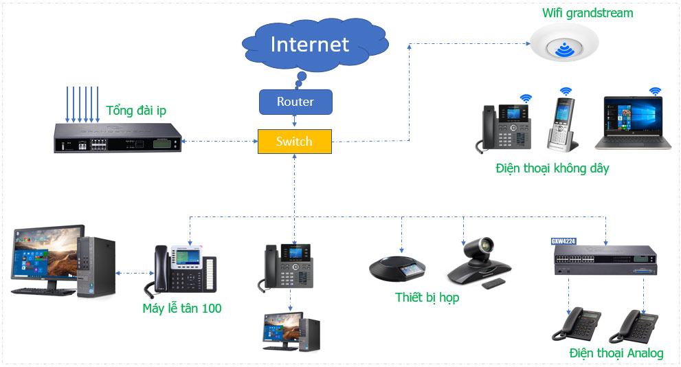 (Mô hình có thể kết hợp với hệ thống tổng đài Grandstream)