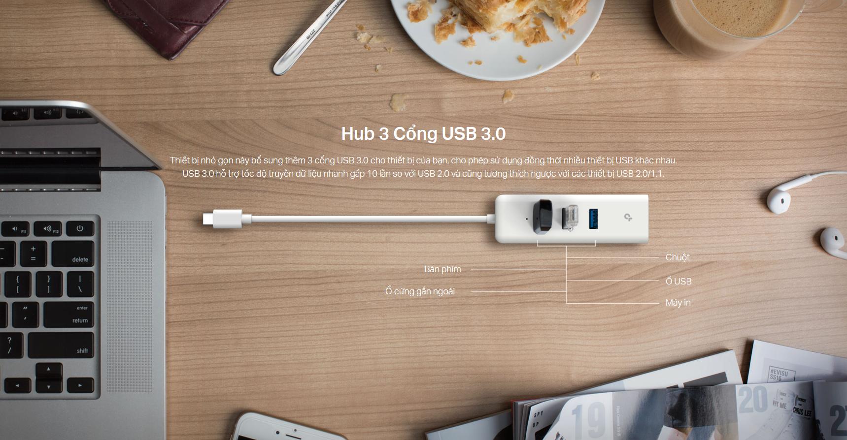 Một số tính năng cơ bản của Hub USB Type-C ra 3 cổng USB-A 3.0 & Mạng Gigabit Ethernet TP-Link UE330C