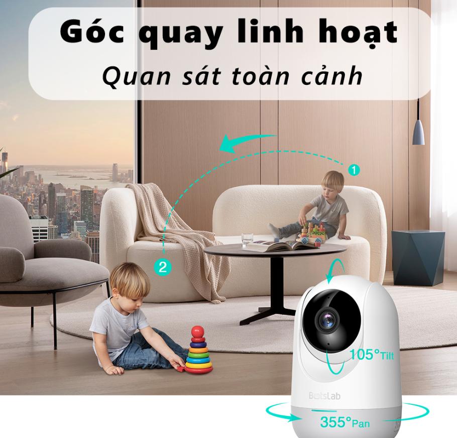(Camera Botslab - góc xoay linh hoạt, quan sát toàn bộ ngôi nhà)