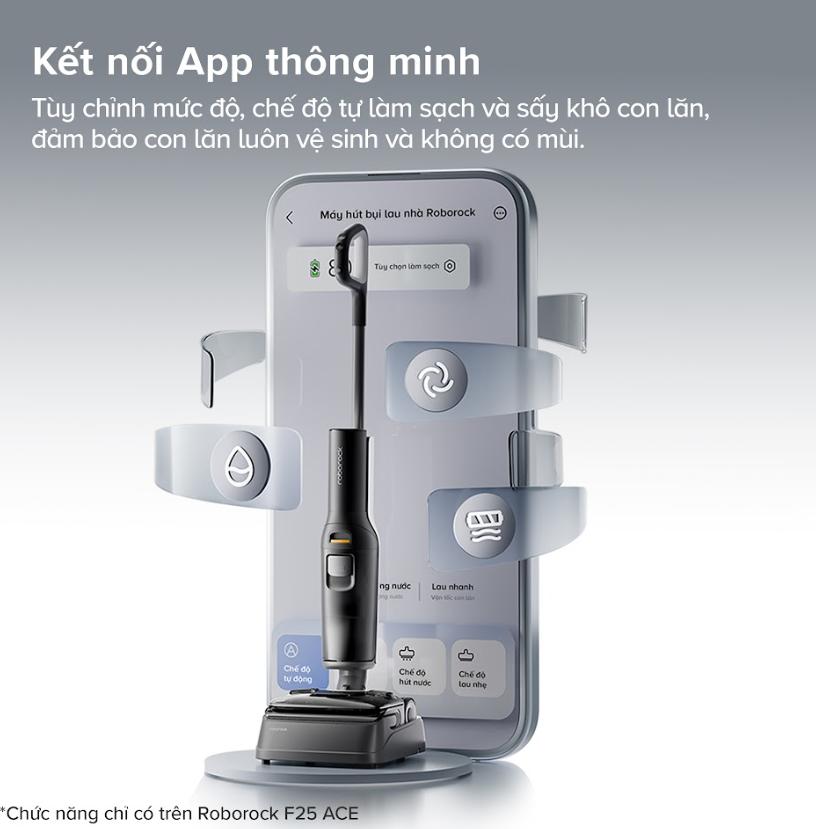 Máy hút bụi Roborock F25 là dòng máy hút bụi cầm tay chống rối với lực hút mạnh mẽ lên đến 20.000 Pa, lý tưởng cho việc làm sạch chuyên sâu trên nhiều bề mặt. Được trang bị đầu bàn chải xoay 70°, máy dễ dàng xử lý các vết bẩn cứng đầu. Tính năng giặt giẻ ở nhiệt độ cao 90°C giúp loại bỏ vi khuẩn hiệu quả. Bình chứa nước sạch dung tích 870ml cùng hệ thống phun 32 lỗ và cảm biến thông minh DirTect tự động điều chỉnh công suất, mang lại trải nghiệm tiện lợi và tối ưu.