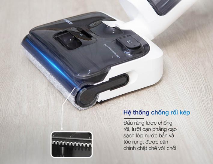 Hệ thống lau và hút sàn khô-ướt đồng thời, giúp tiết kiệm thời gian, gọn gàng hơn so với việc dùng 2 thiết bị riêng biệt.