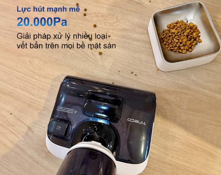 Lực hút mạnh mẽ lên tới 20.000 Pa, giúp bạn dễ dàng loại bỏ bụi bẩn, lông thú, mảnh vụn bám lâu ngày trên bề mặt sàn.