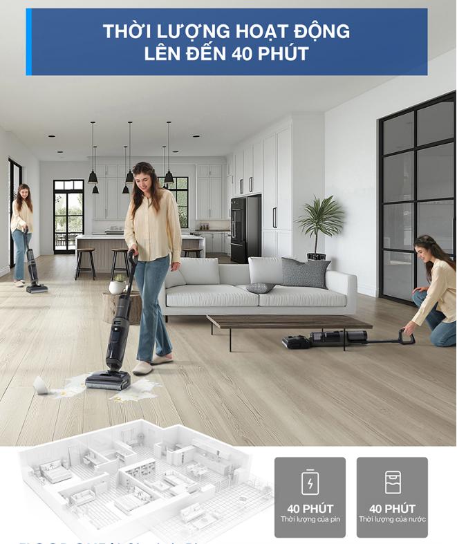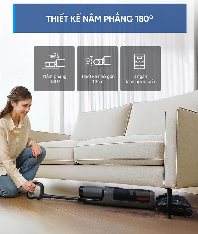 Thiết kế ngả phẳng 180º, con lăn sát cạnh 0.5cm, cùng thời gian hoạt động lên tới 40 phút mang lại trải nghiệm dọn dẹp linh hoạt và hiệu quả. Đây chính là giải pháp toàn diện cho ngôi nhà hiện đại, nơi sự sạch sẽ, tiện nghi và công nghệ được hòa quyện hoàn hảo.