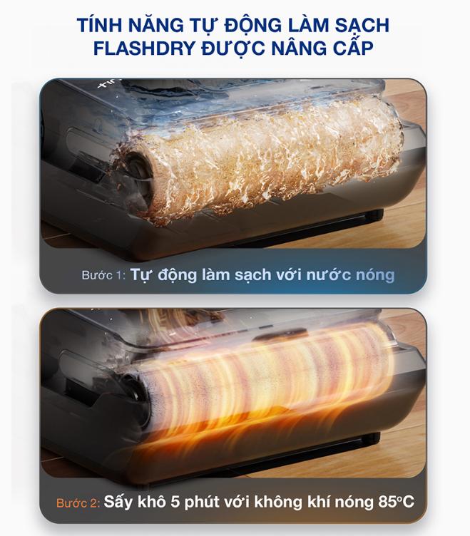 Đặc biệt, con lăn xoay hai chiều được thiết kế để giảm thiểu tối đa vi khuẩn bám trên bề mặt, đảm bảo máy luôn sẵn sàng cho lần sử dụng tiếp theo. Chu trình này không chỉ giúp làm sạch hiệu quả mà còn tăng tuổi thọ của thiết bị.