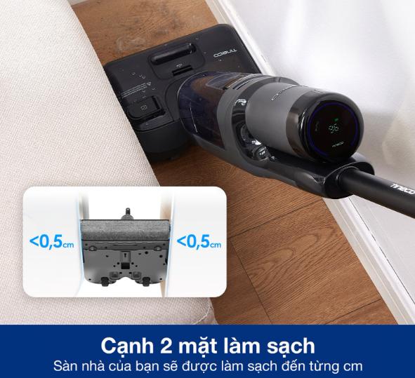 Cảm biến thông minh iLoop giúp máy tự nhận diện mức độ bẩn của sàn và điều chỉnh lực hút cùng lượng nước phù hợp, vừa tiết kiệm pin vừa tối ưu hiệu quả dọn dẹp. Máy còn chăm sóc đến từng chi tiết nhỏ nhờ khả năng làm sạch cạnh đôi, đảm bảo không bỏ sót góc tường hay mép chân tủ, mang lại sàn nhà sạch bóng hoàn hảo.